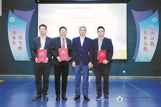 李小兵(左二)被聘为广工计算机学院校友分会会长 |
